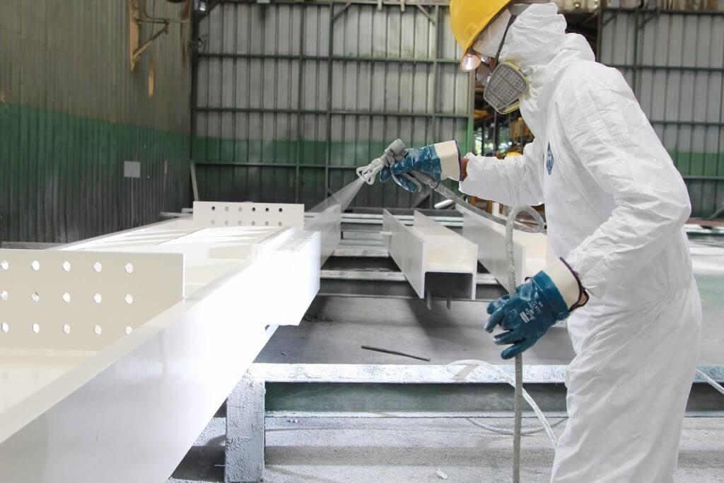 industriales pesados ​​o cuando el acero se encuentra en el exterior de un edificio y necesita una calificación contra incendios. Los intumescentes exteriores también funcionan en lugares con restricciones de espacio reducido, como los huecos de los ascensores, donde se desea una opción más delgada a la protección contra incendios cementicia convencional.
