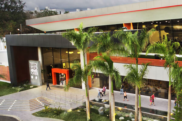 Construcción de instalaciones que albergan tienda y locales comerciales. Incluye instalaciones sanitarias, parqueos en hormigón hidráulico y jardinería.