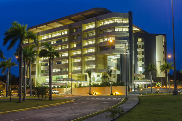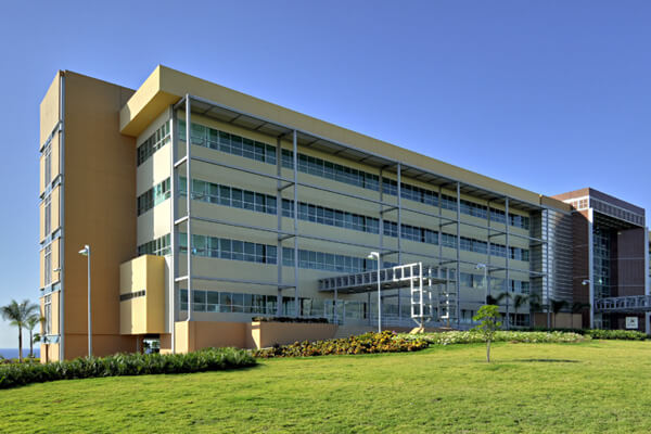 Moderno edificio de 12 niveles que alberga aulas, laboratorios, salas de investigaciones y áreas para simulación clínica, así como oficinas administrativas, salón de conferencias y cubículos para profesores.