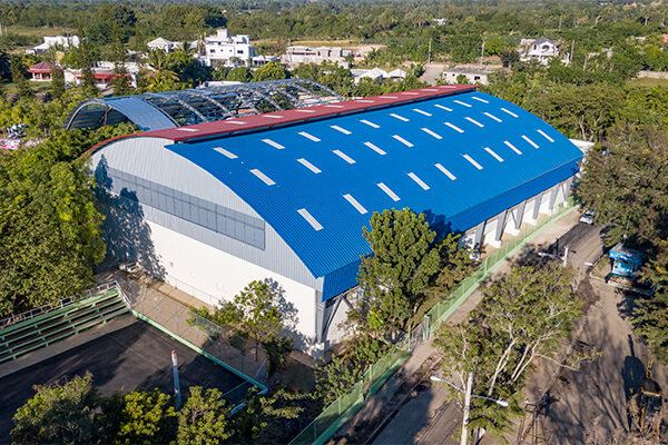 Diseño y construcción en complejo polideportivo, de un multiuso en estructura metálica con techo curvo y dos anexos en hormigón armado preparados para el desarrollo de artes marciales y boxeo.